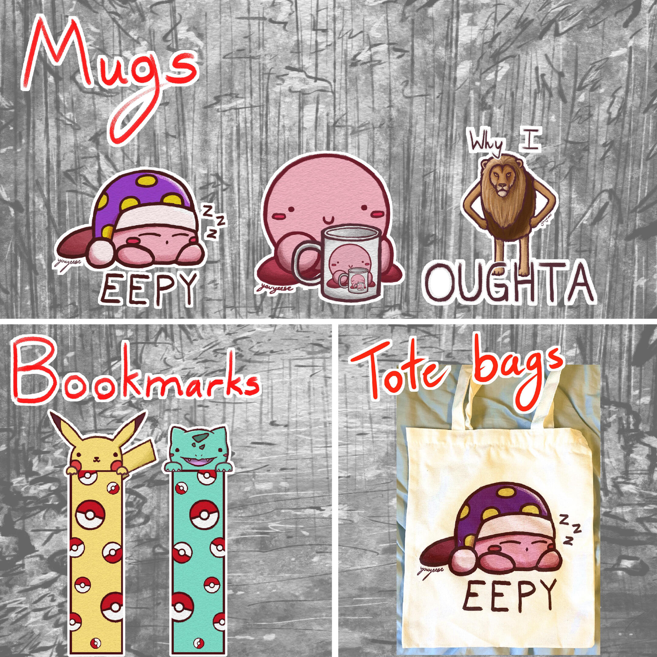 Mugs, Bookmarks, Tote Bags